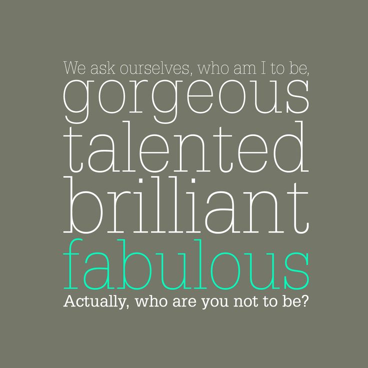 “Our greatest fear is not that we are inadequate; our greatest fear is that we are powerful beyond measure. You say, ‘Who am I to be brilliant, gorgeous, talented? Actually, who are you not to be? You are a child of God! Your playing small does not serve the world….and as we let our own lights shine, we unconsciously liberate others to do the same.”